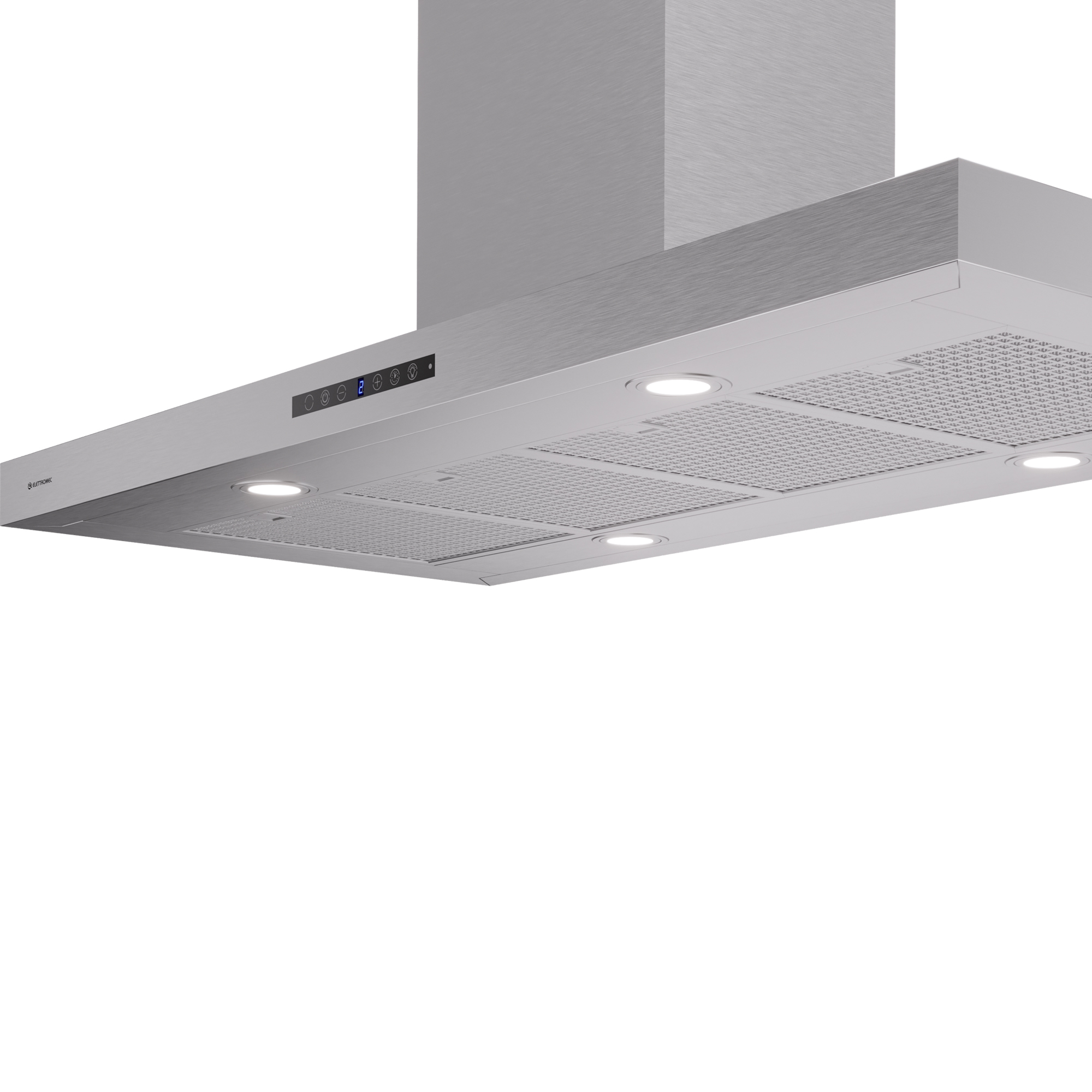Design tradicional e sofisticado, com acabamento em aço inoxidável, e tecnologia contemporânea. Opções de exaustão e depuração; vazão de 1.200 m³/h; funções Timer, para controle do funcionamento após o desligamento, e Turbo, para ser acionada quando são preparados alimentos que exigem uma purificação maior do ar; quatro velocidades; comando touch; e alerta de limpeza e troca de filtros.