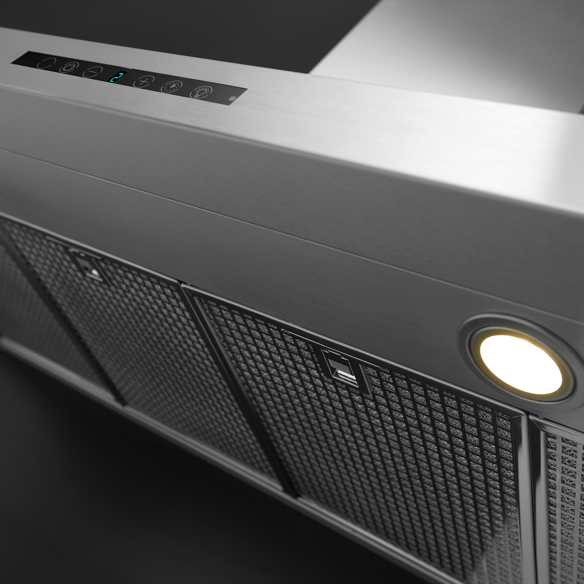 Design tradicional aliado a eficiência e tecnologia: acabamento em aço inoxidável, comando touch, iluminação em LED, função timer e alerta para a troca dos filtros .