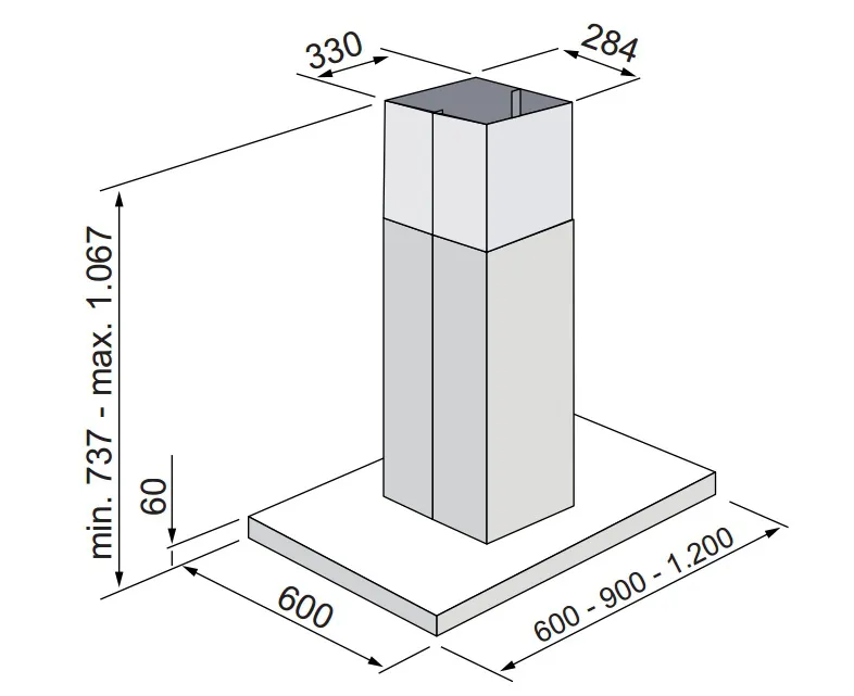 120 cm largura, Vazão de 1.200 m³/h, Aspiração Central, instalação ilha.